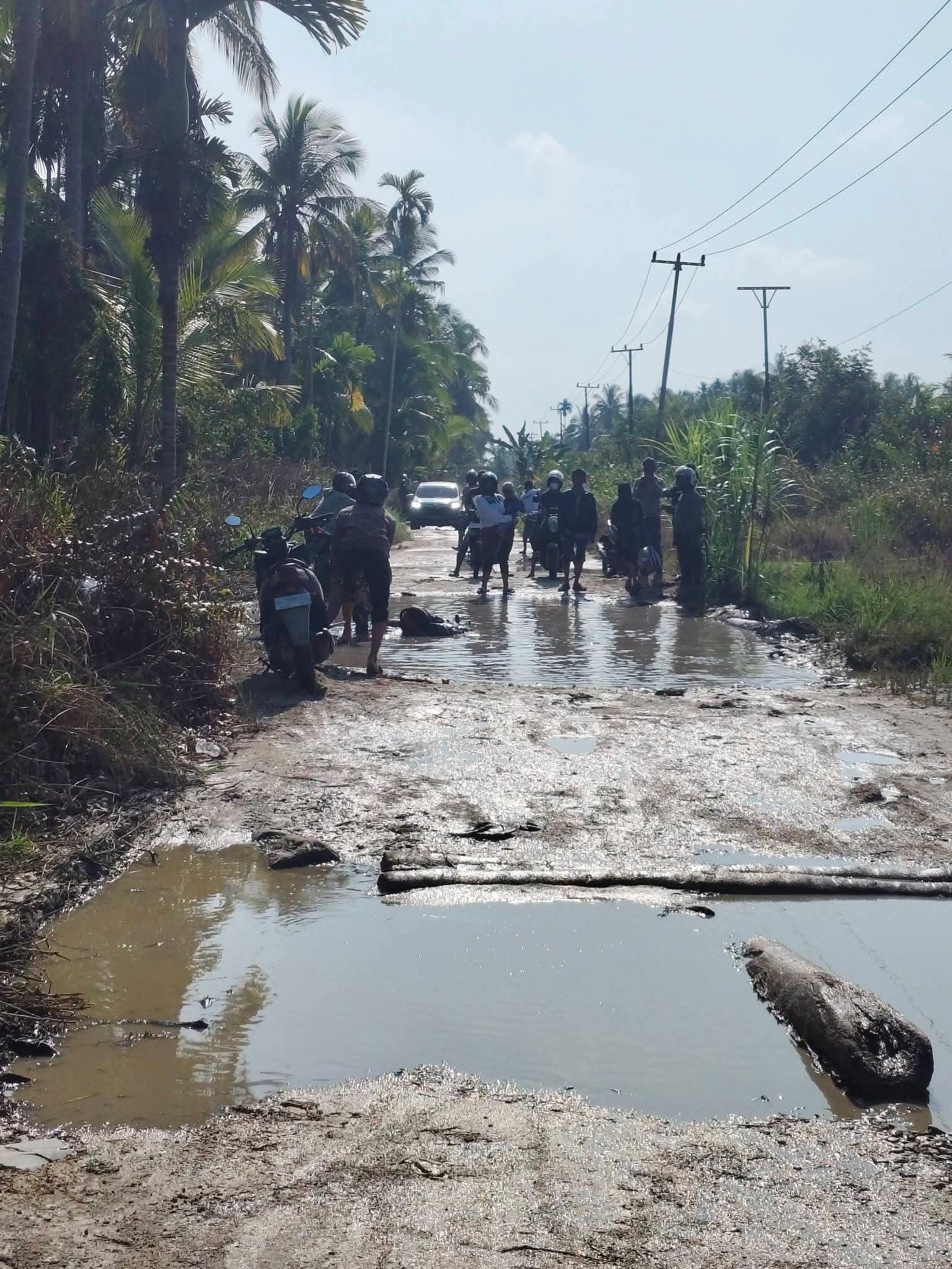 “Kalau hujan, jalannya semakin parah. Banyak motor dan mobil yang terjebak lumpur,” ujar salah seorang warga yang kerap melewati jalan itu.