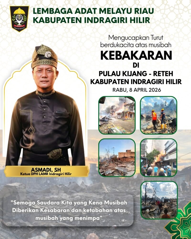 “Kami dari LAMR Kabupaten Indragiri Hilir turut berduka cita yang sedalam-dalamnya atas musibah kebakaran ini. Semoga para korban diberikan ketabahan dan kekuatan dalam menghadapi ujian ini,” ujarnya.