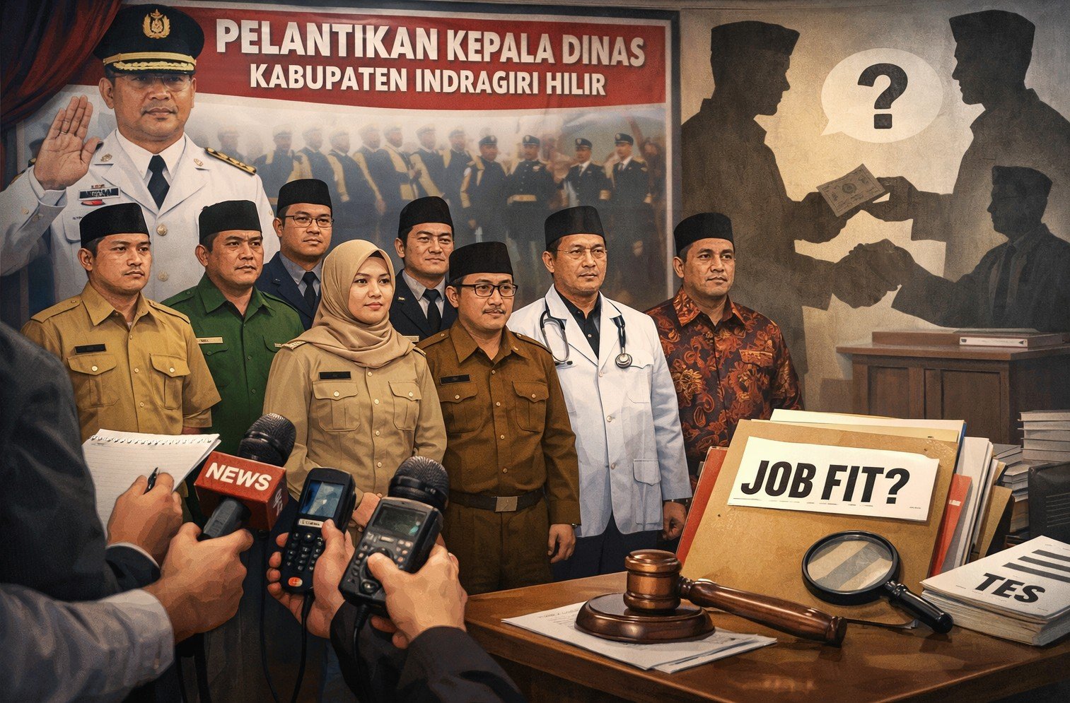 Visionernews.id | INDRAGIRI HILIR,  Pelantikan sejumlah Kepala Dinas (Kadis) baru di lingkungan Pemerintah Kabupaten Indragiri Hilir (Inhil) menuai tanda tanya dari berbagai pihak. Proses penempatan pejabat tersebut dinilai minim transparansi, terutama terkait tahapan uji kompetensi atau job fit yang seharusnya menjadi dasar dalam menentukan pejabat pimpinan tinggi pratama.